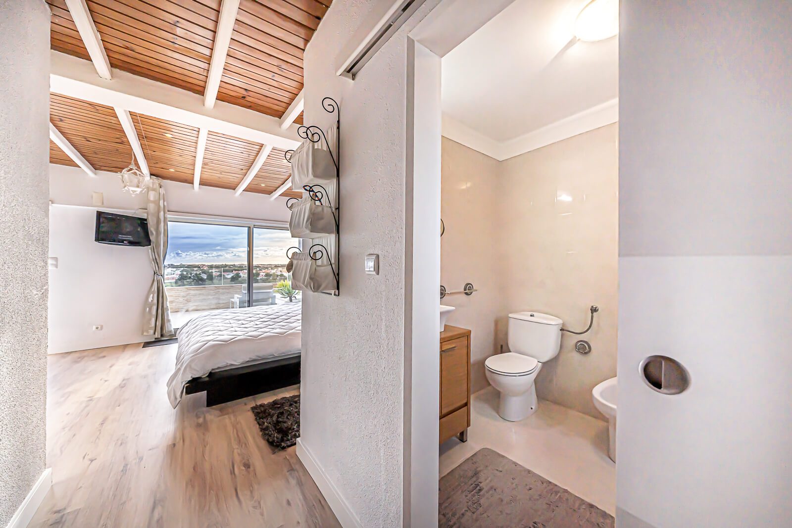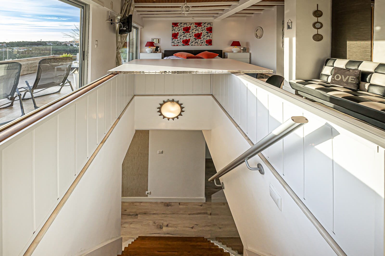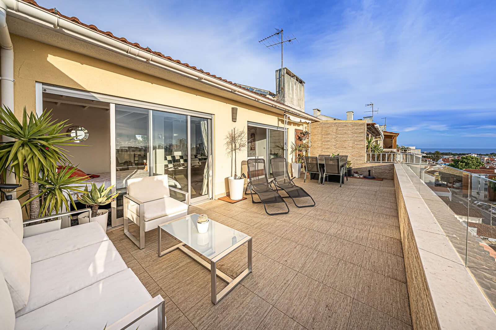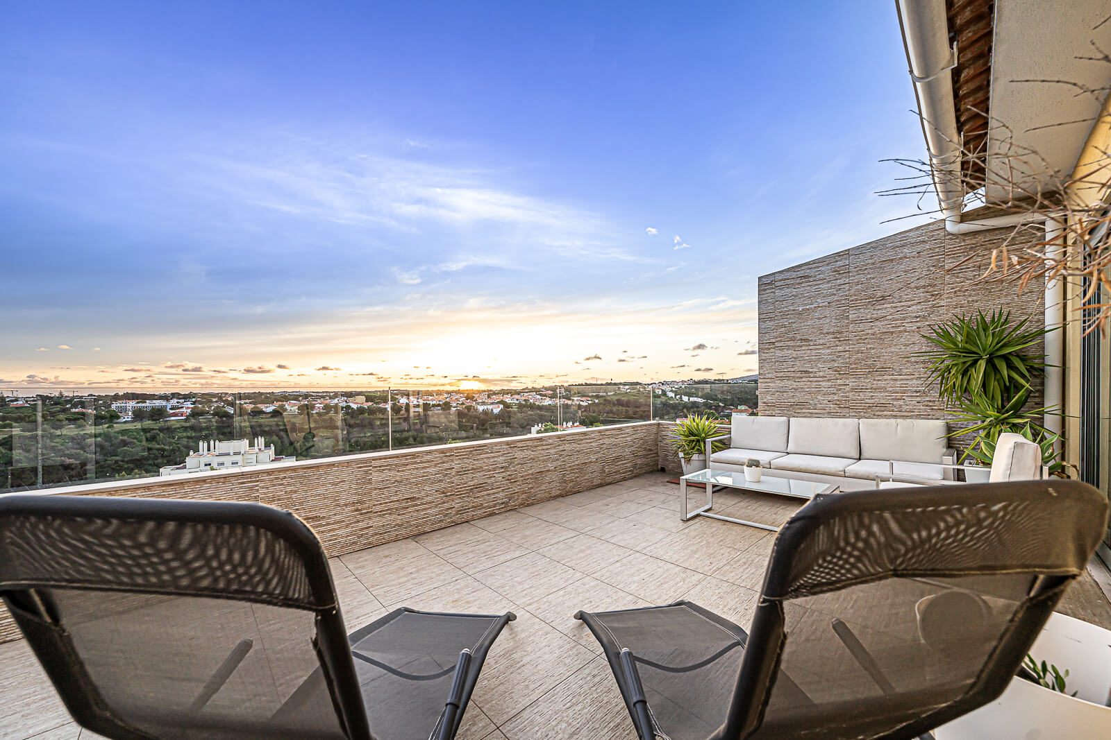 Completam este belíssimo duplex, 2 quartos servidos por 2 casas de banho no piso térreo, e uma mega suite com mais de 50m2 com closet e terraço com mais de 40m2 com vista panorâmica sobre Cascais, características raras de encontrar num imóvel no concelho de Cascais.