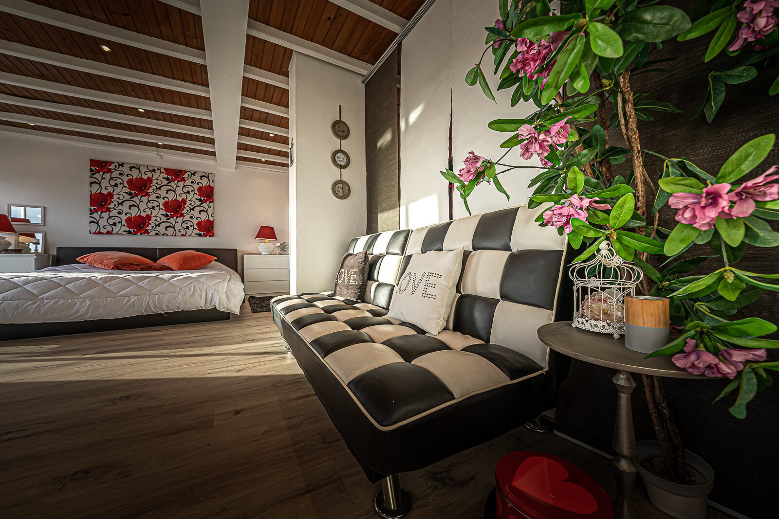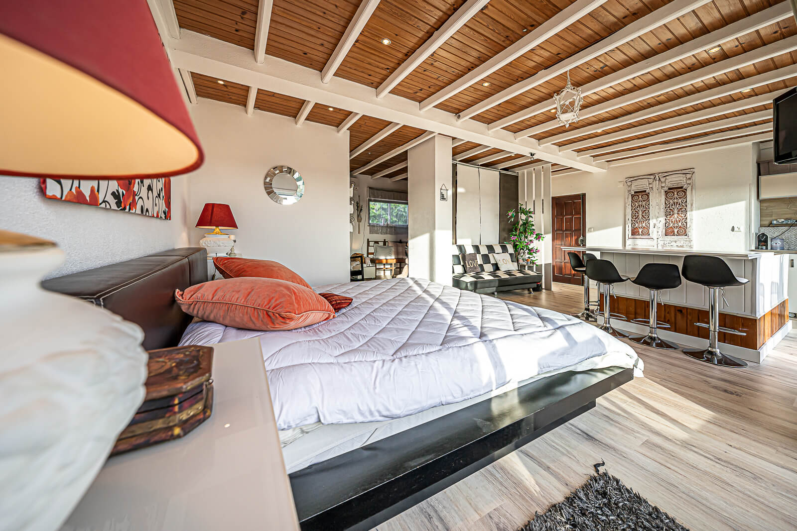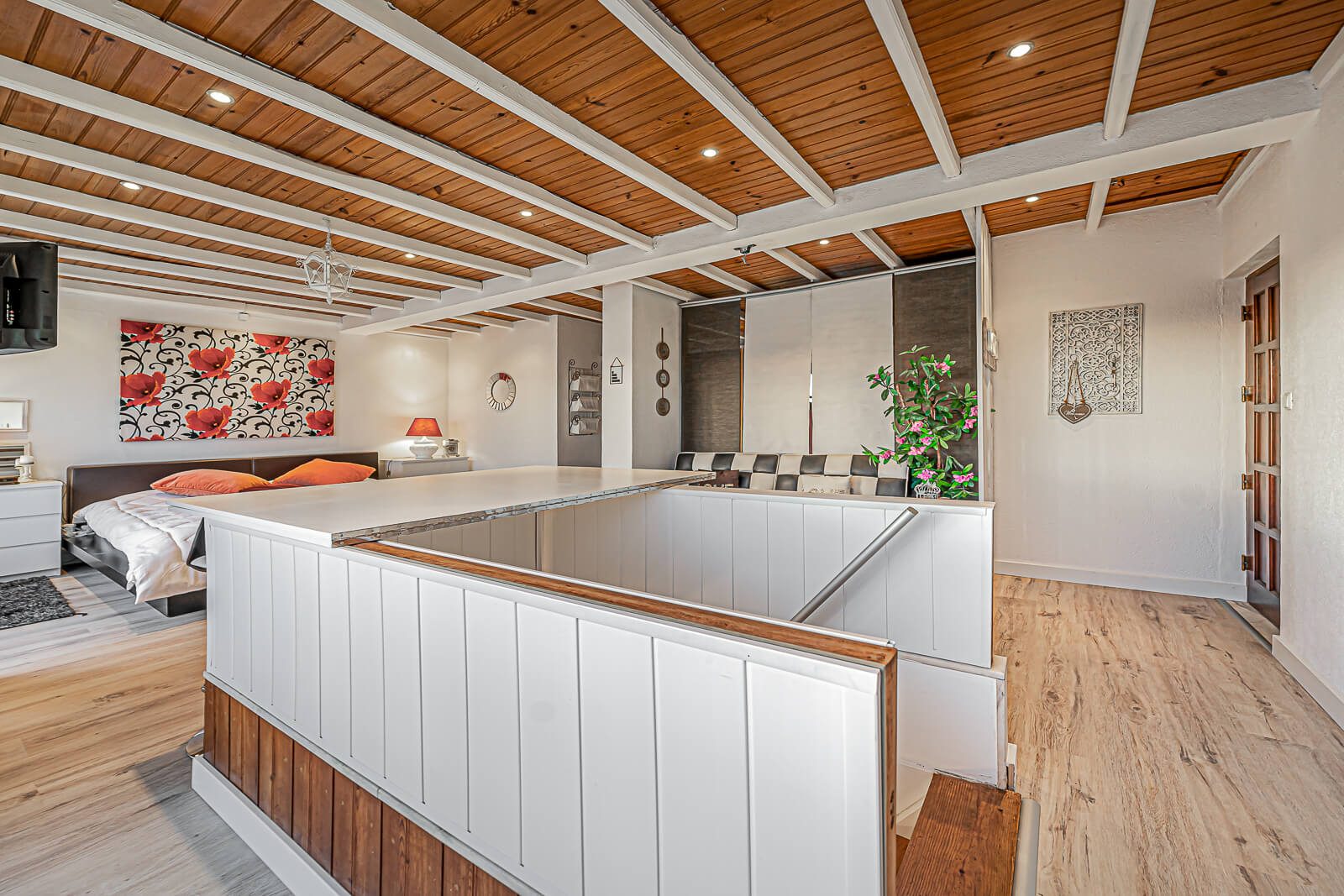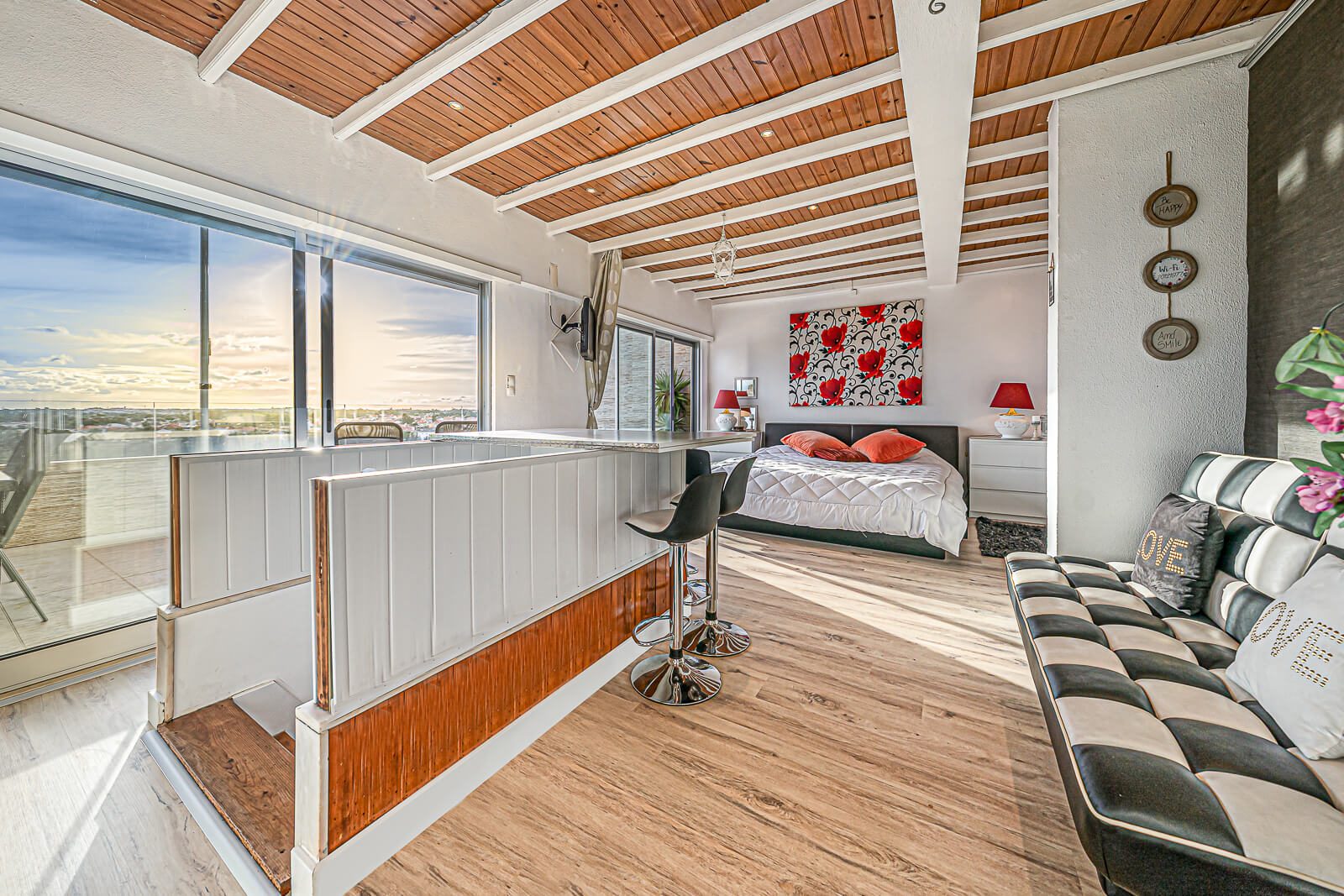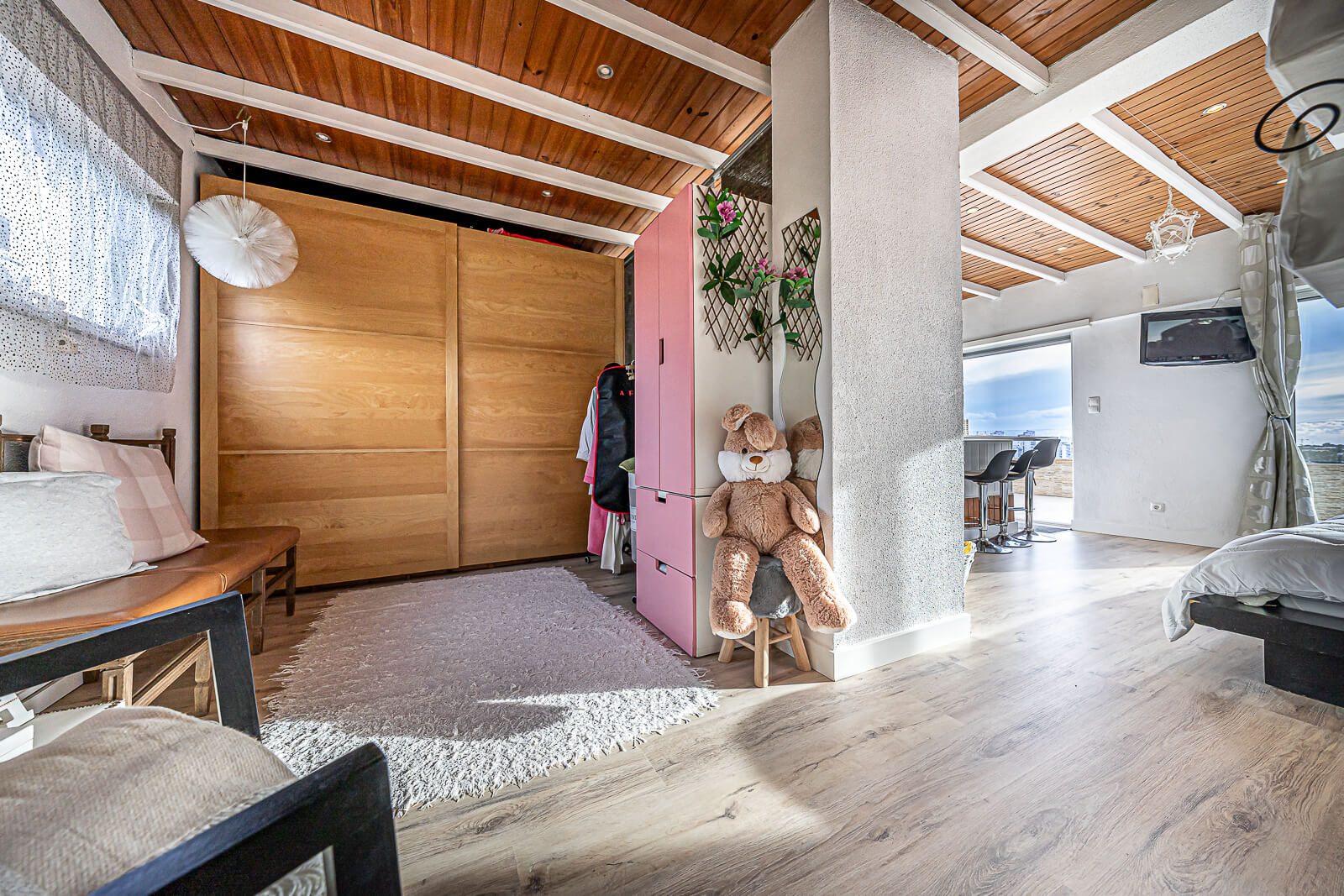 Completam este belíssimo duplex, 2 quartos servidos por 2 casas de banho no piso térreo, e uma mega suite com mais de 50m2 com closet e terraço com mais de 40m2 com vista panorâmica sobre Cascais, características raras de encontrar num imóvel no concelho de Cascais.