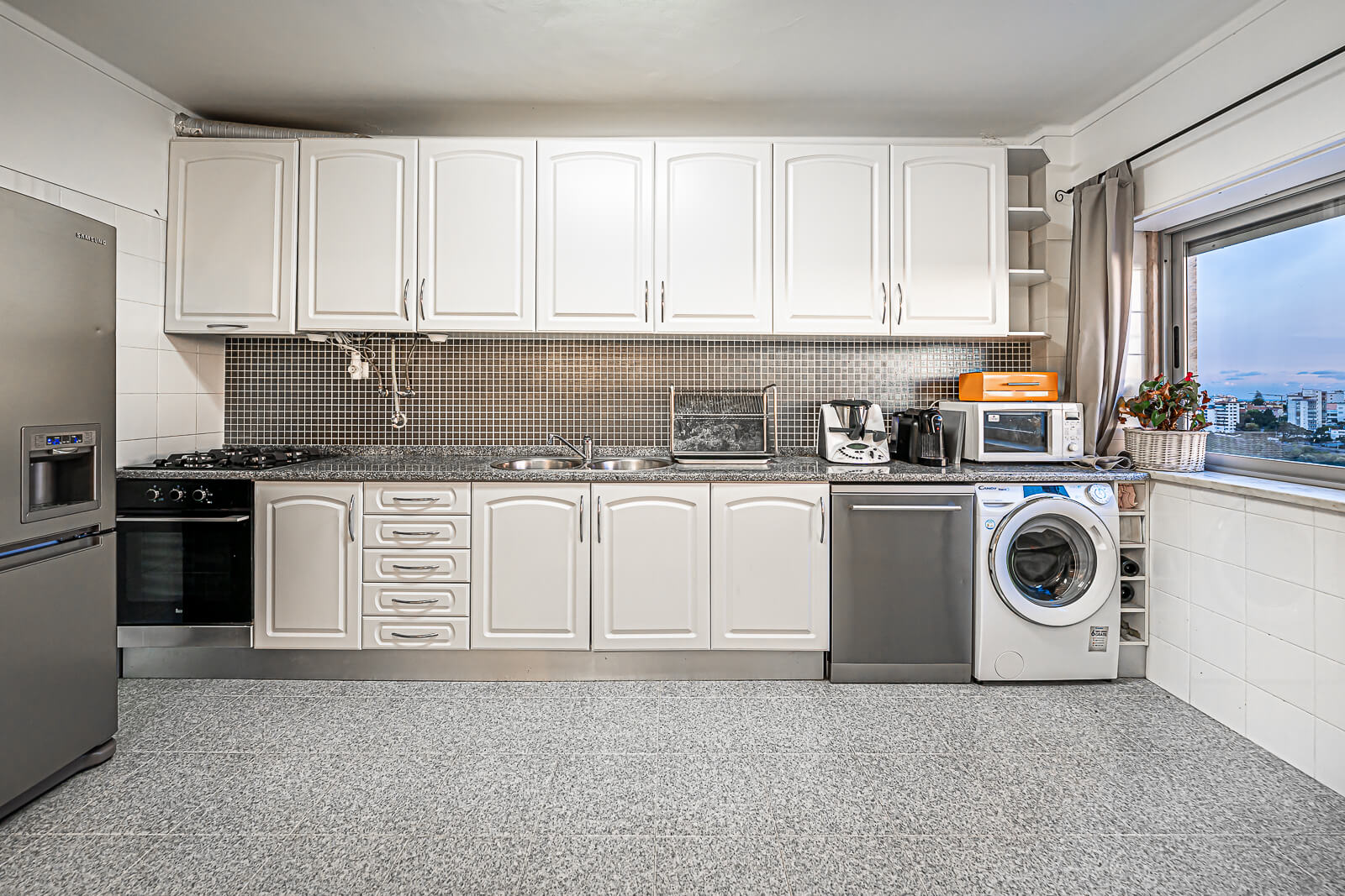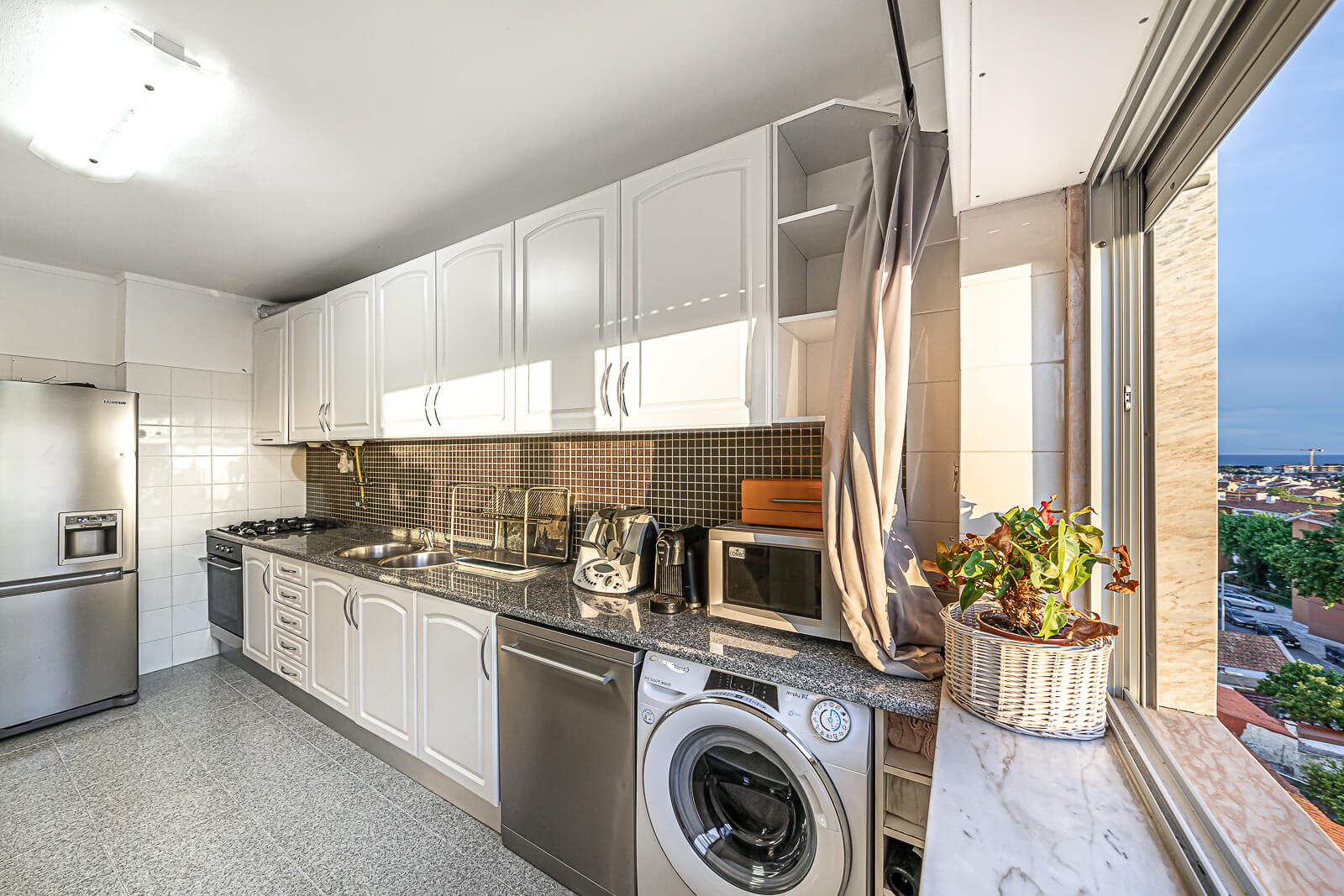 Este apartamento originalmente de 4 quartos foi convertido num espaçoso T3 onde pode usufruir de uma grande sala de estar e zona de refeições para pelo menos 6 pessoas na cozinha onde poderá apreciar a vista desafogada sobre Cascais.