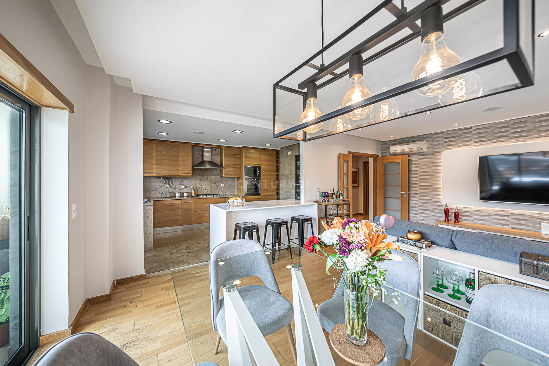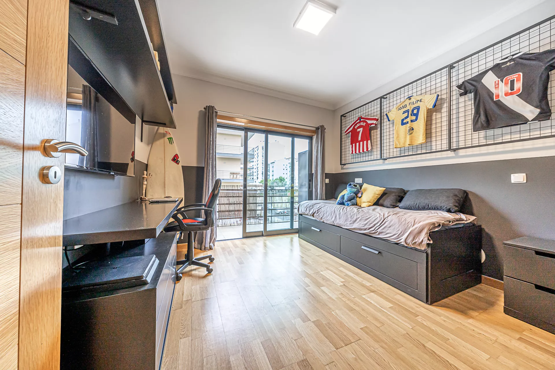 Apartamento T3 com uma área bruta de 158 m2, localizado em zona residencial a curta distância da praia, Parque de Palmela e da estacão de comboios.