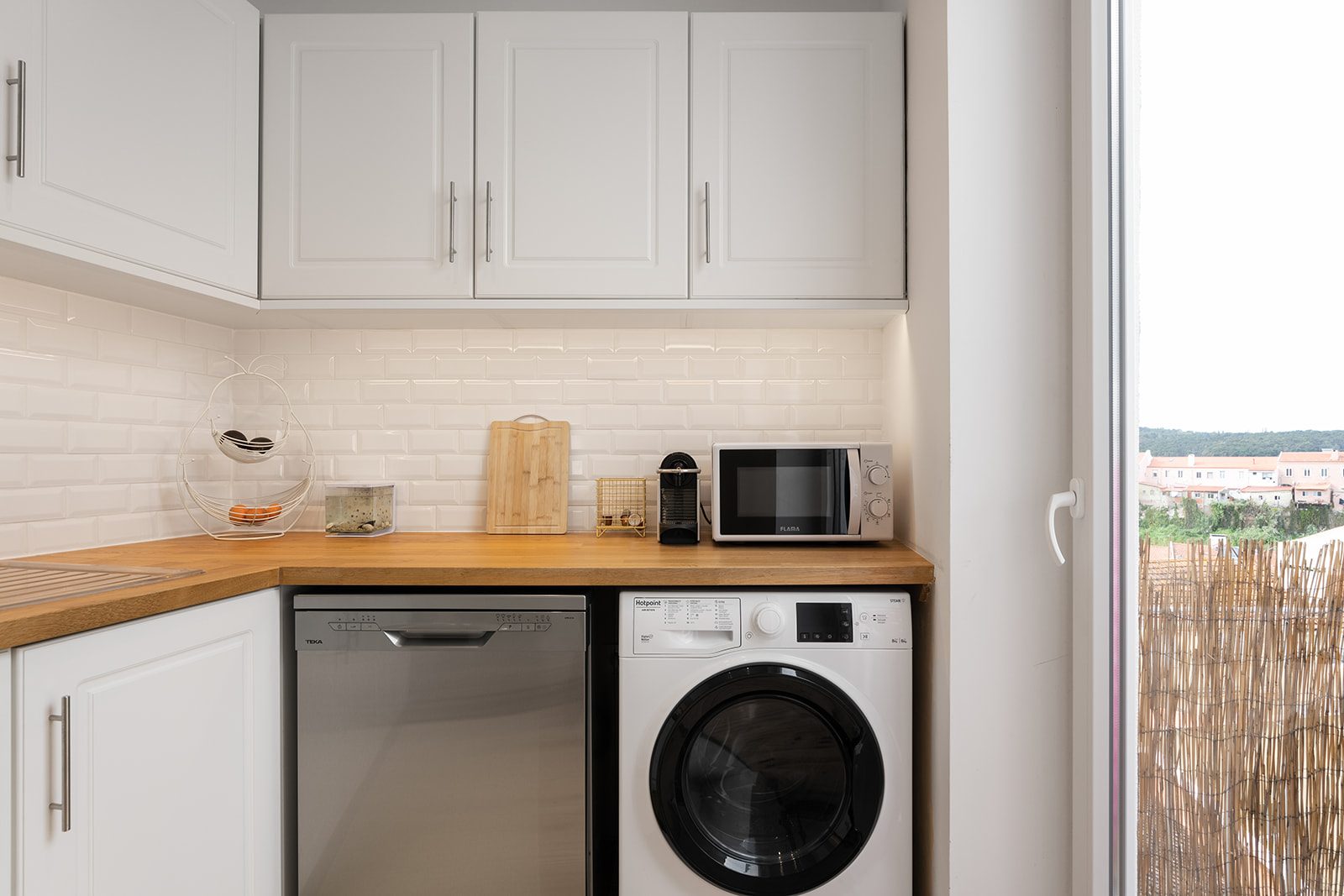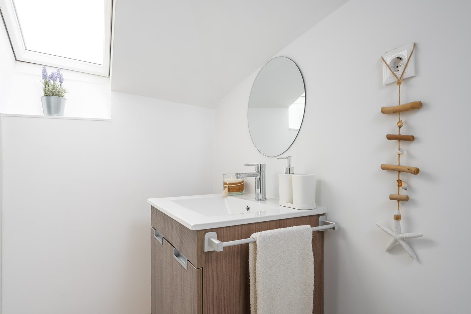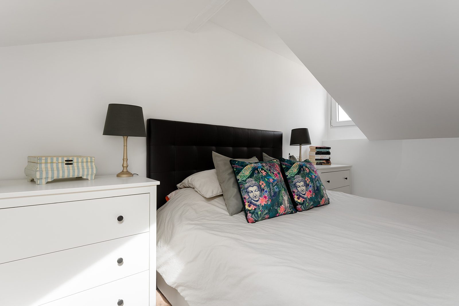 O apartamento é composto por dois pisos. No primeiro piso, encontra-se uma espaçosa sala com dois ambientes distintos – uma área de estar e uma zona de refeições – além de um quarto, uma casa de banho, uma cozinha totalmente equipada e varanda. No piso superior, encontramos outro quarto, uma segunda casa de banho e zonas de arrumos.