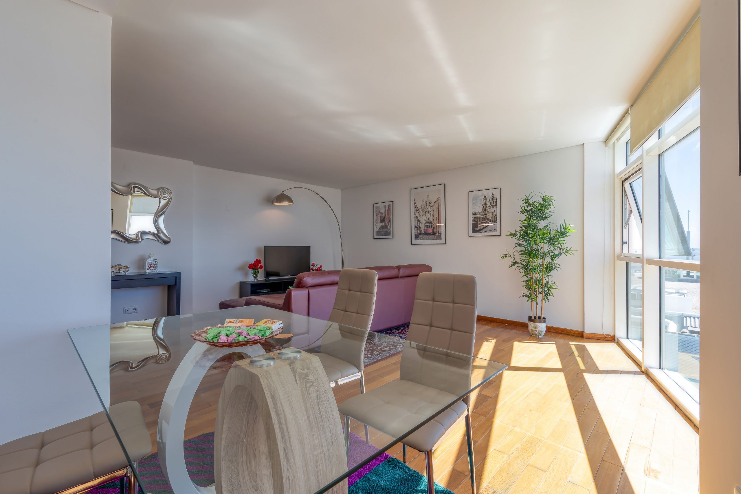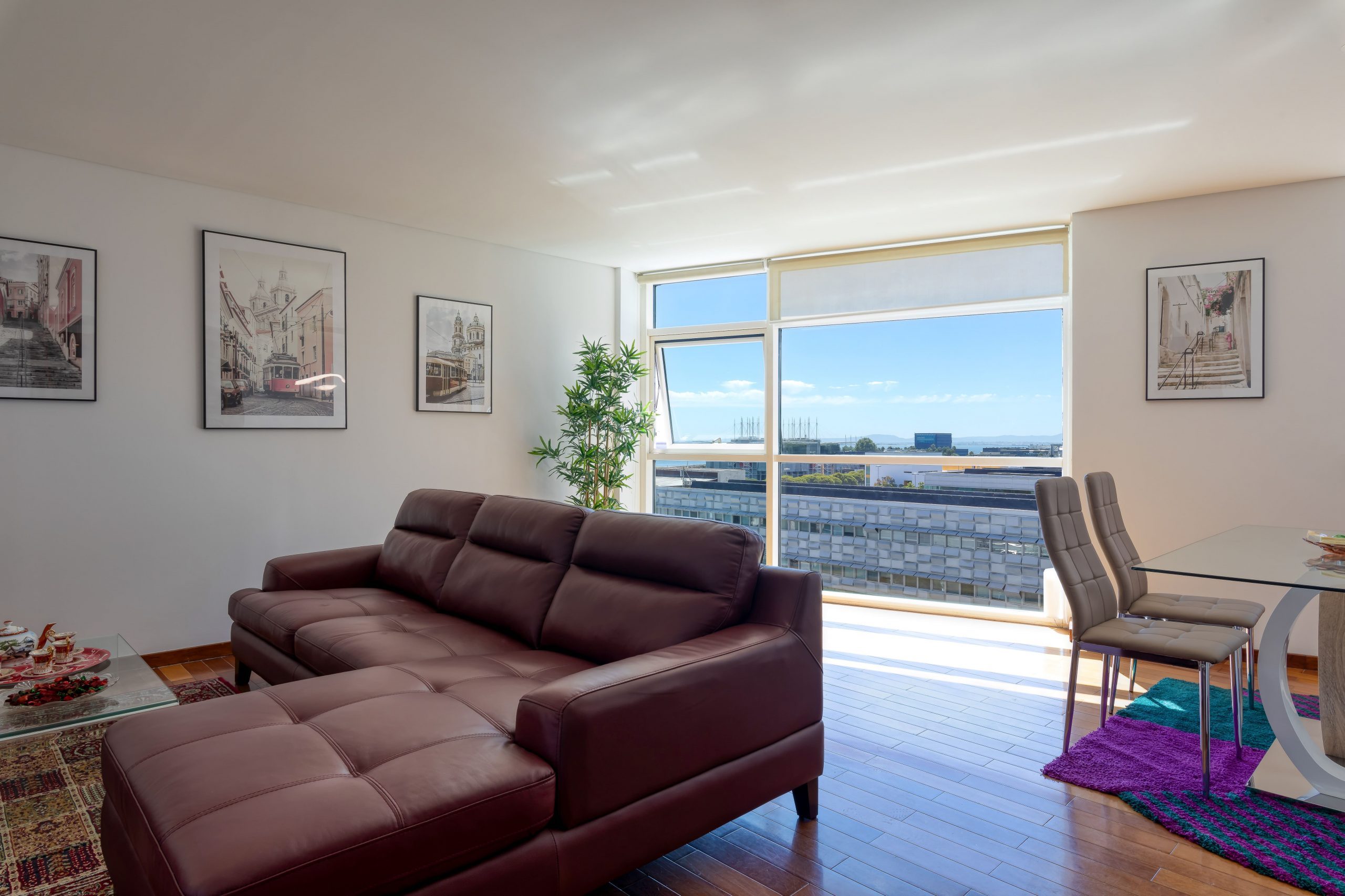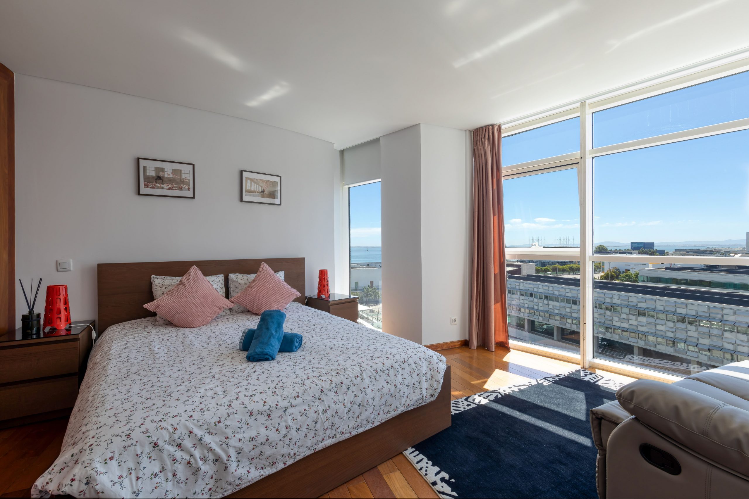Apartamento T2 Duplex totalmente equipado e mobilado, sito na Torre de São Gabriel, edifício emblemático do Parque da Nações, em Lisboa.