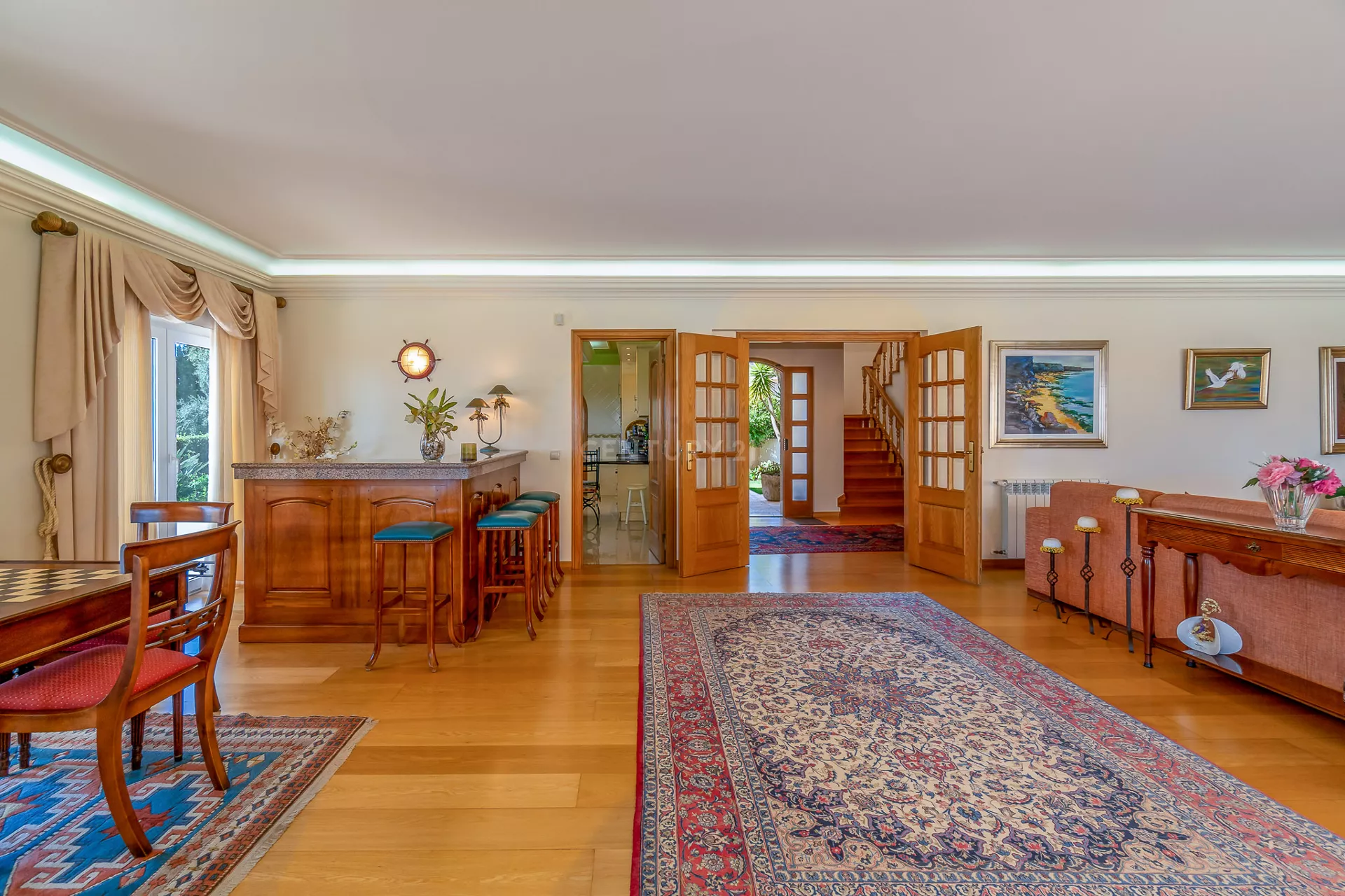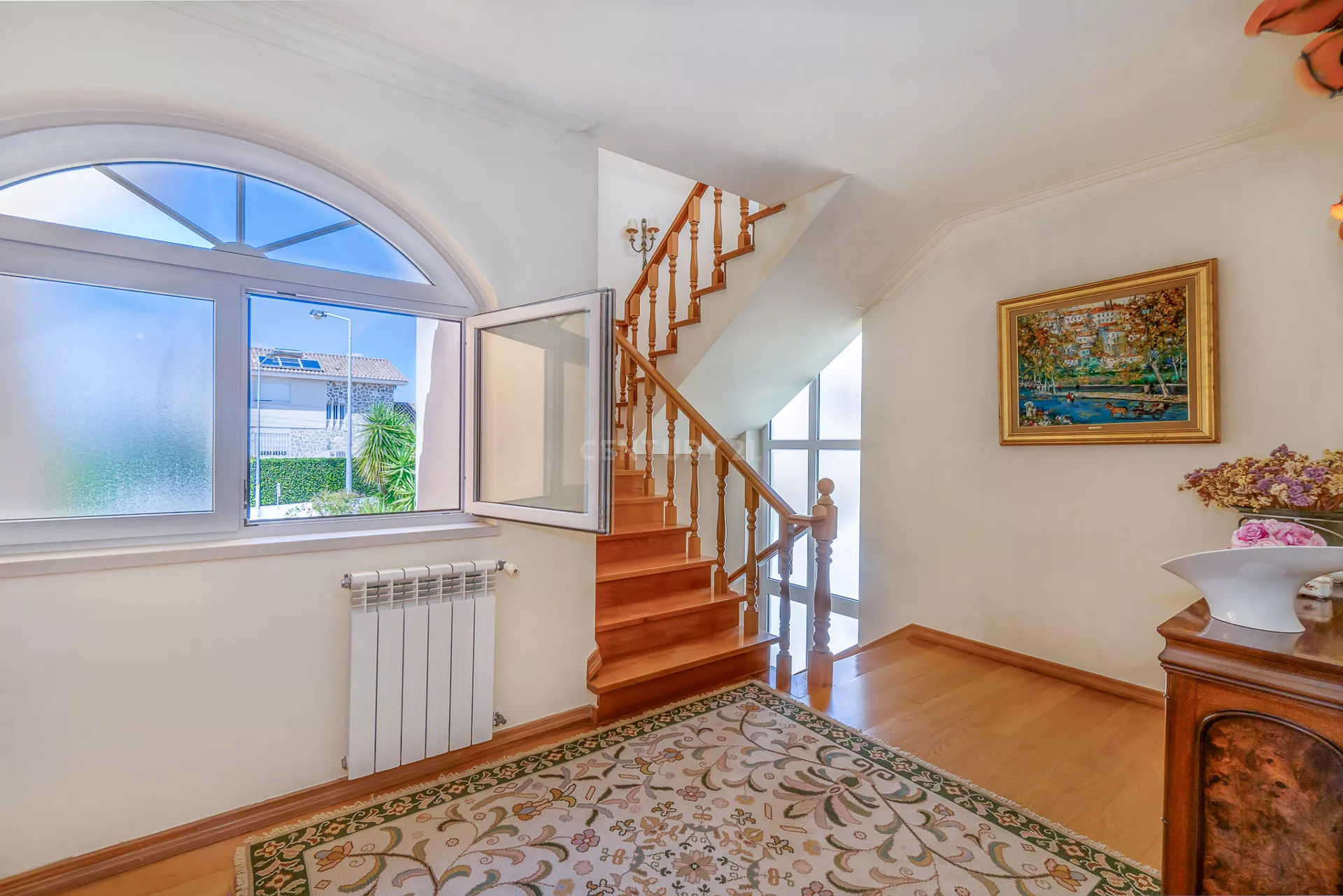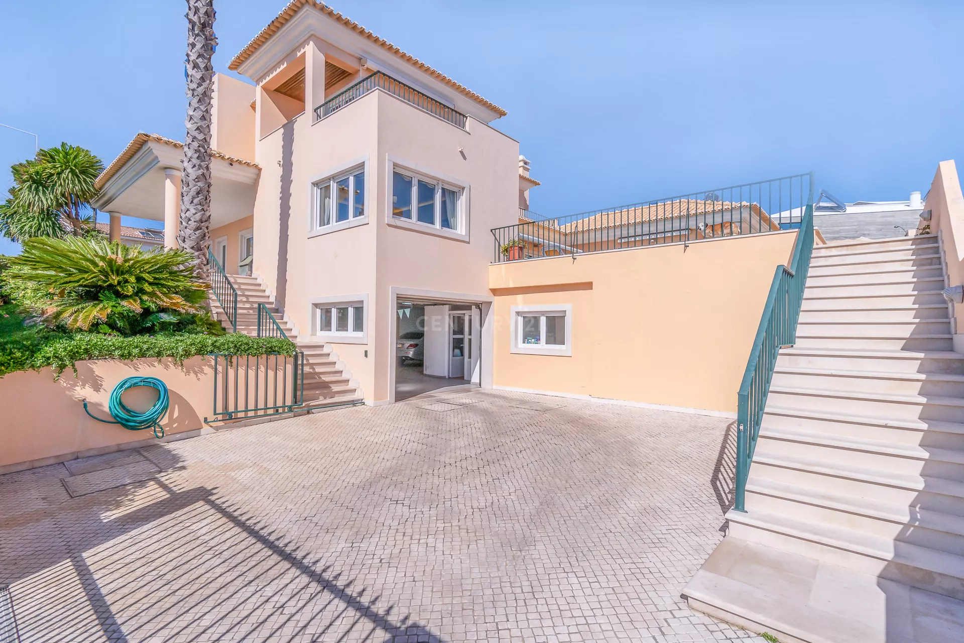 É no Alto do Jardins da Parede que esta moradia, assente numa colina com mar à vista, se faz notar. A poucos km do centro de Cascais e a escassos metros da praia de São Pedro do Estoril, esta propriedade tem como principal cartão de visita a deslumbrante vista de mar. Esta moradia de traça rustica, permite apreciar o mar desde do piso -1 (garagem) até ao último piso (terraço), onde ai irá desfrutar de uma vista panorâmica soberba de mar, bem como, o mesmo nos permite ver desde o cabo espichel em Sesimbra até ao Palácio da Pena em Sintra.