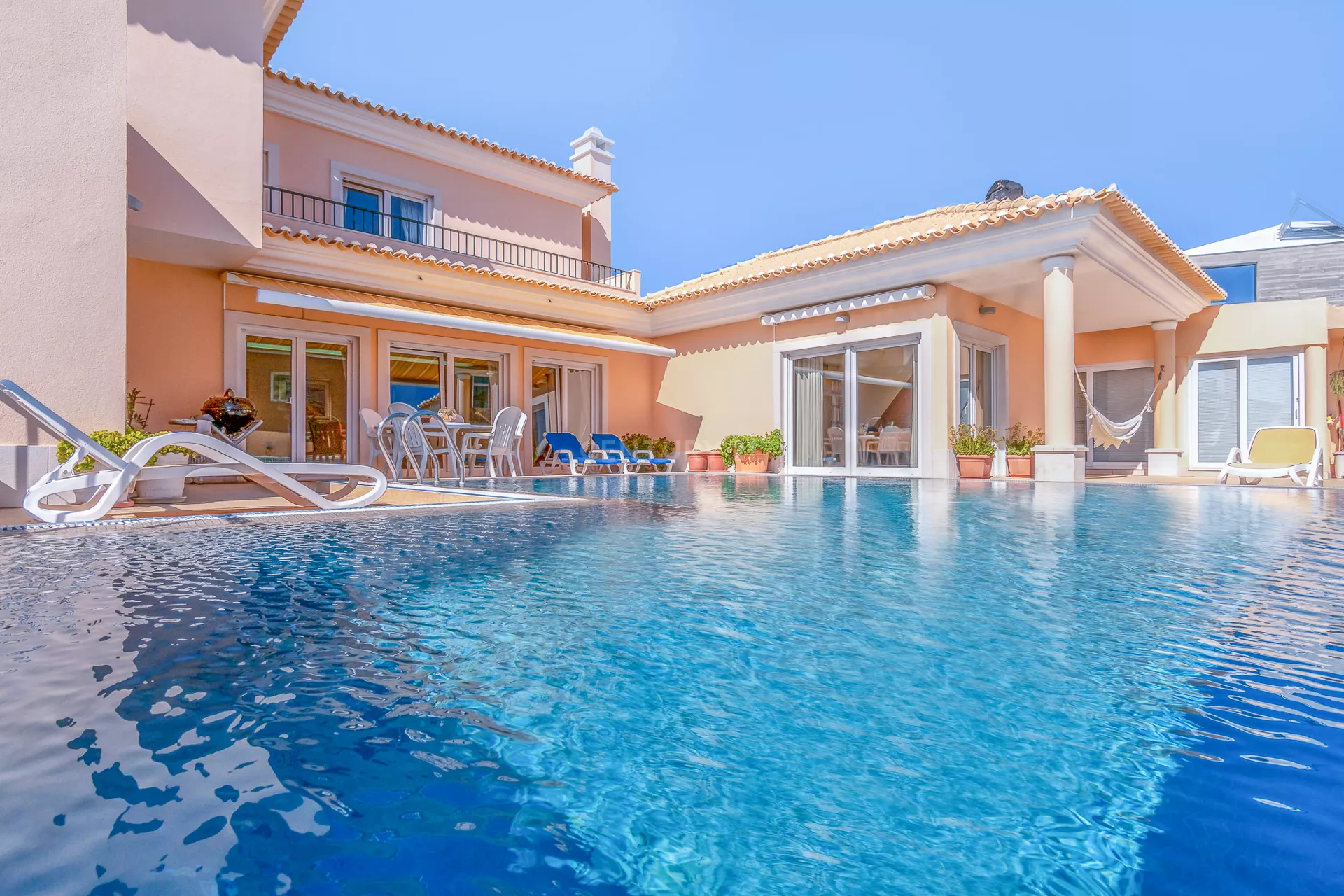 Furo de água com bomba; Painel Solar; Piscina Aquecida; Estores Elétricos com corte térmico; Aquecimento Central; um anexo com mais de 20m²; churrasqueira Barbecue; Janelas de vidros duplos oscilobatentes; Terraço; Portões Automáticos e lareira.