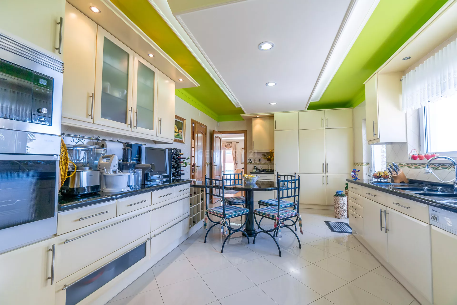 Piso (0) – (Entrada principal efetuada pela Avenida Almirante João de Azevedo Coutinho) – Hall entrada, Sala ampla (60m²) com lareira e Suite (20m²) ambos com acesso direto à piscina, Cozinha (24m²) totalmente equipada com acesso direto ao exterior, lavandaria e uma casa de banho.