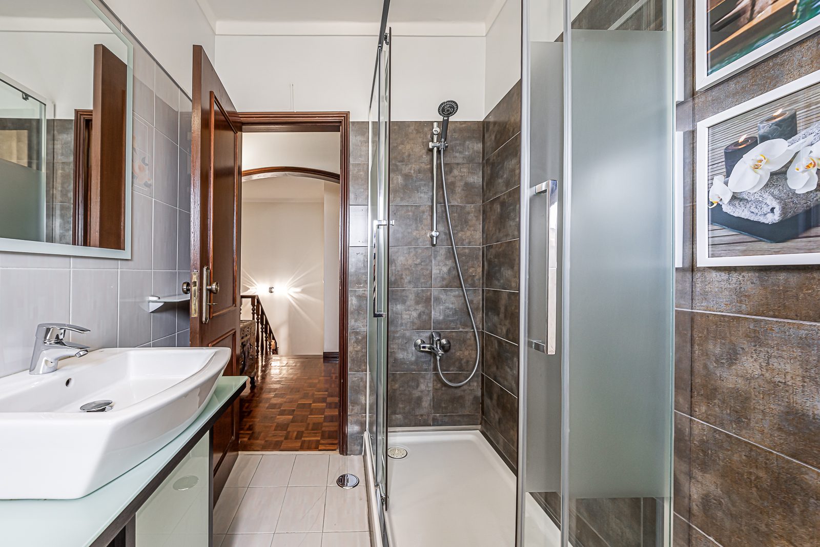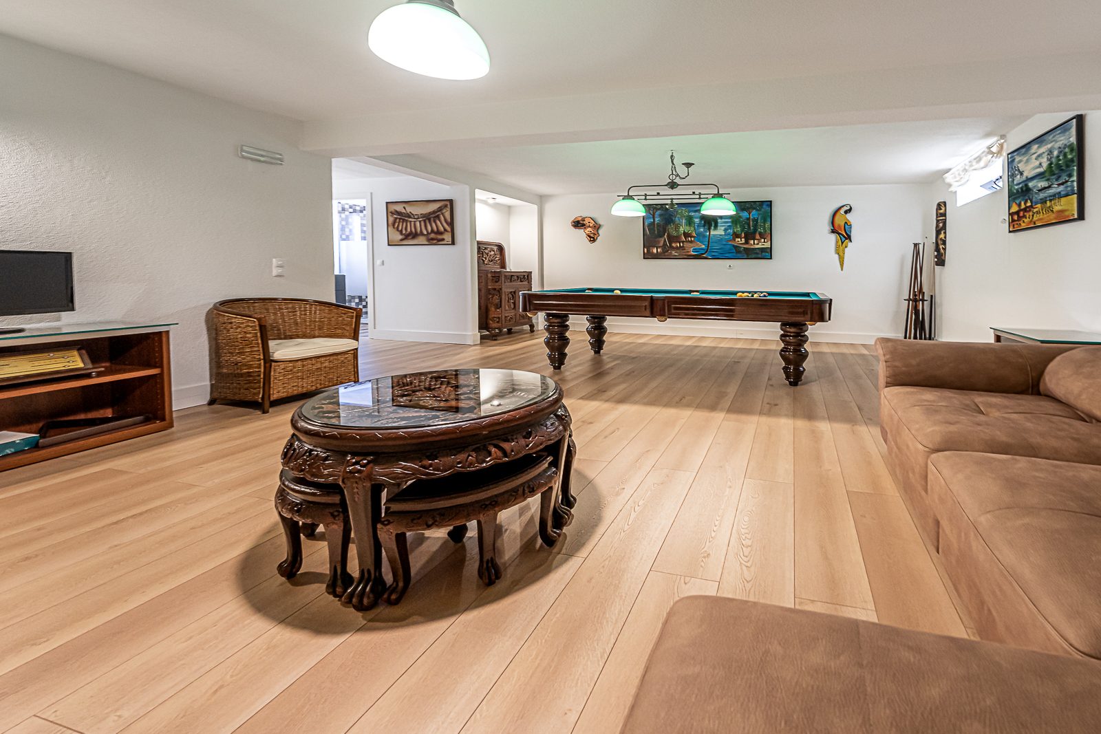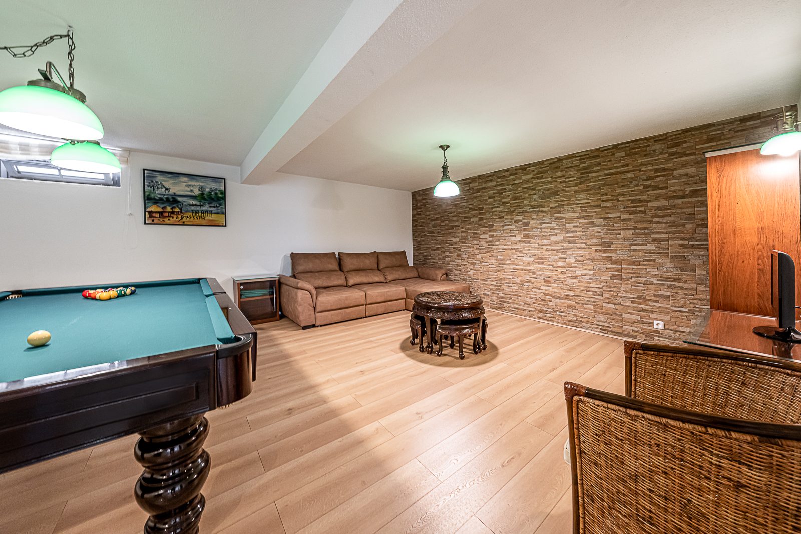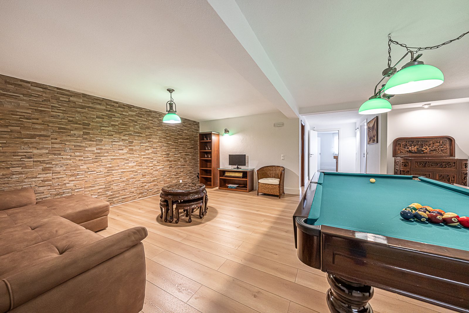 Esta propriedade também beneficia de uma encantadora sala comum localizada no piso mais íntimo e privado da mesma e que poderá transformar numa confortável sala de cinema e numa sala de jogos que dispõe da serventia de uma casa de banho completa.