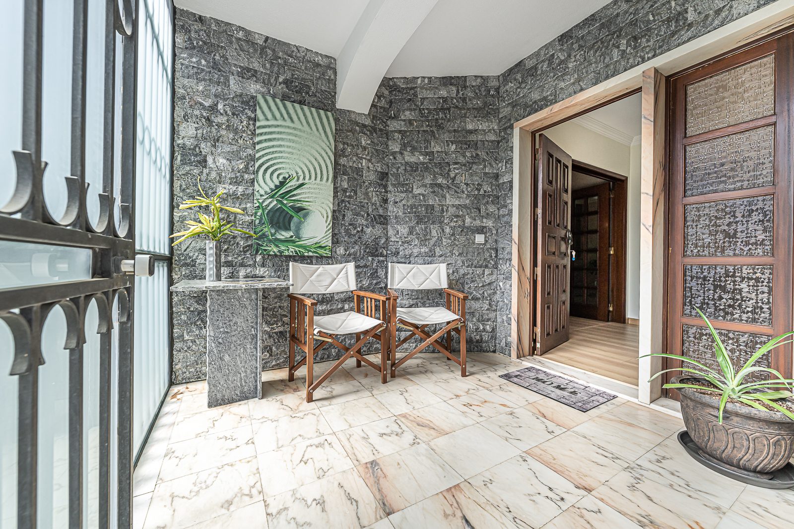 Graças à combinação de materiais rústicos e modernos, cada elemento contribui para criar um ambiente elegante e exclusivo.