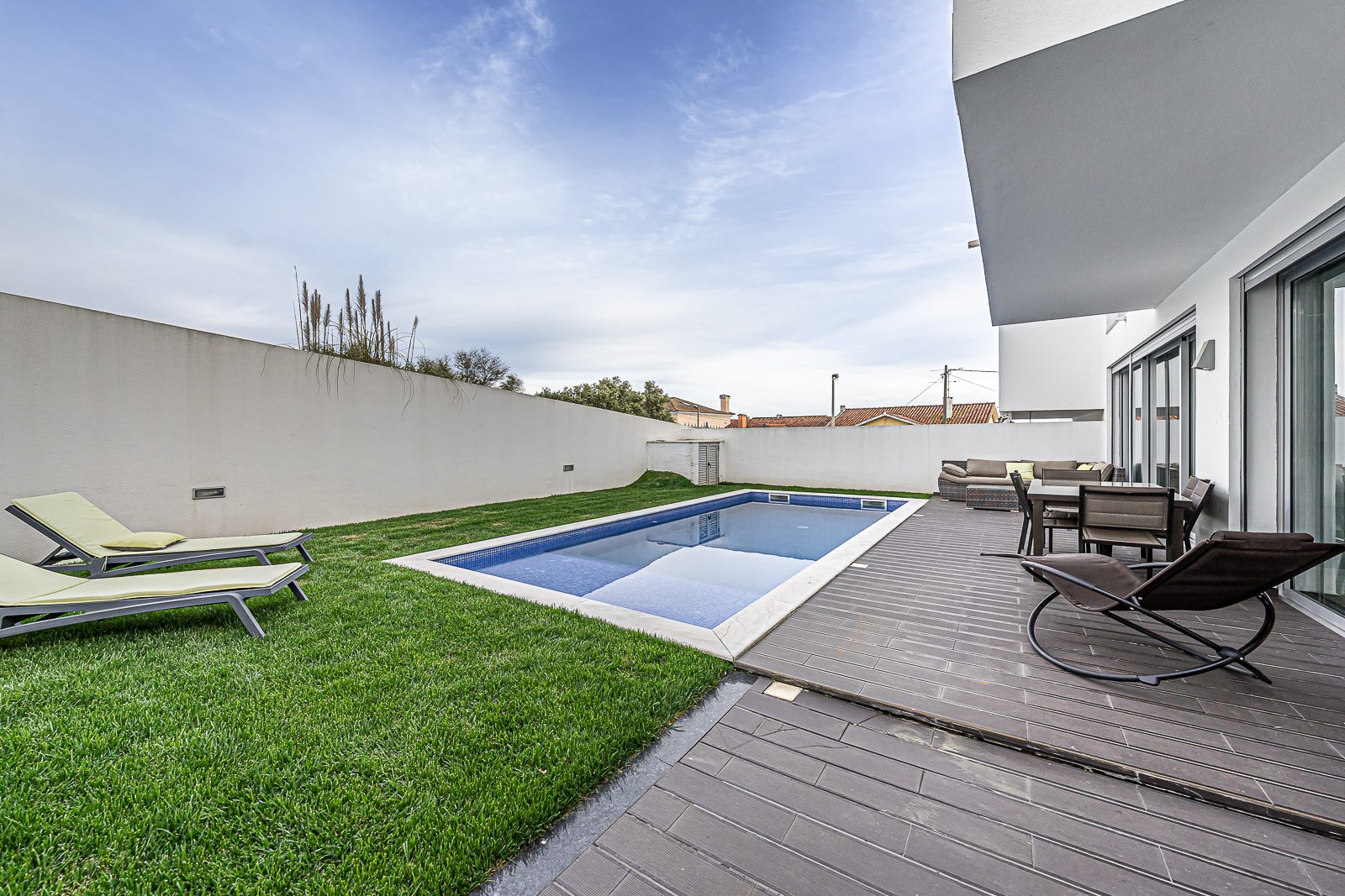 Nesta propriedade destaca-se, cave transformada em zona de lazer, 4 quartos, cozinha totalmente equipada e uma espaçosa sala com imensa luz natural com acesso ao jardim e à piscina, zona de estacionamento para 2 carros com alpendre que poderá fechar transformando numa garagem, e painéis solares para águas quentes. Para aqueles que procuram privacidade e segurança, esta casa de estilo moderno vai superar todas as expectativas.
