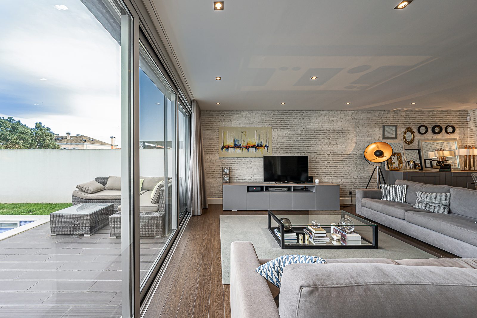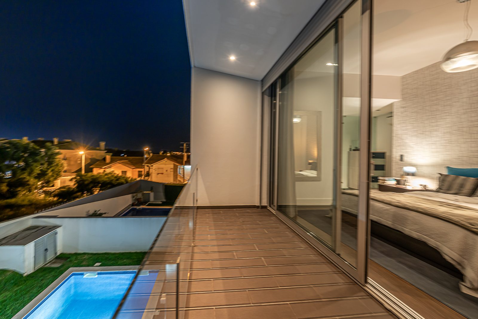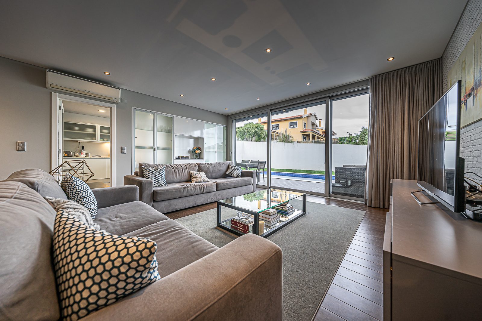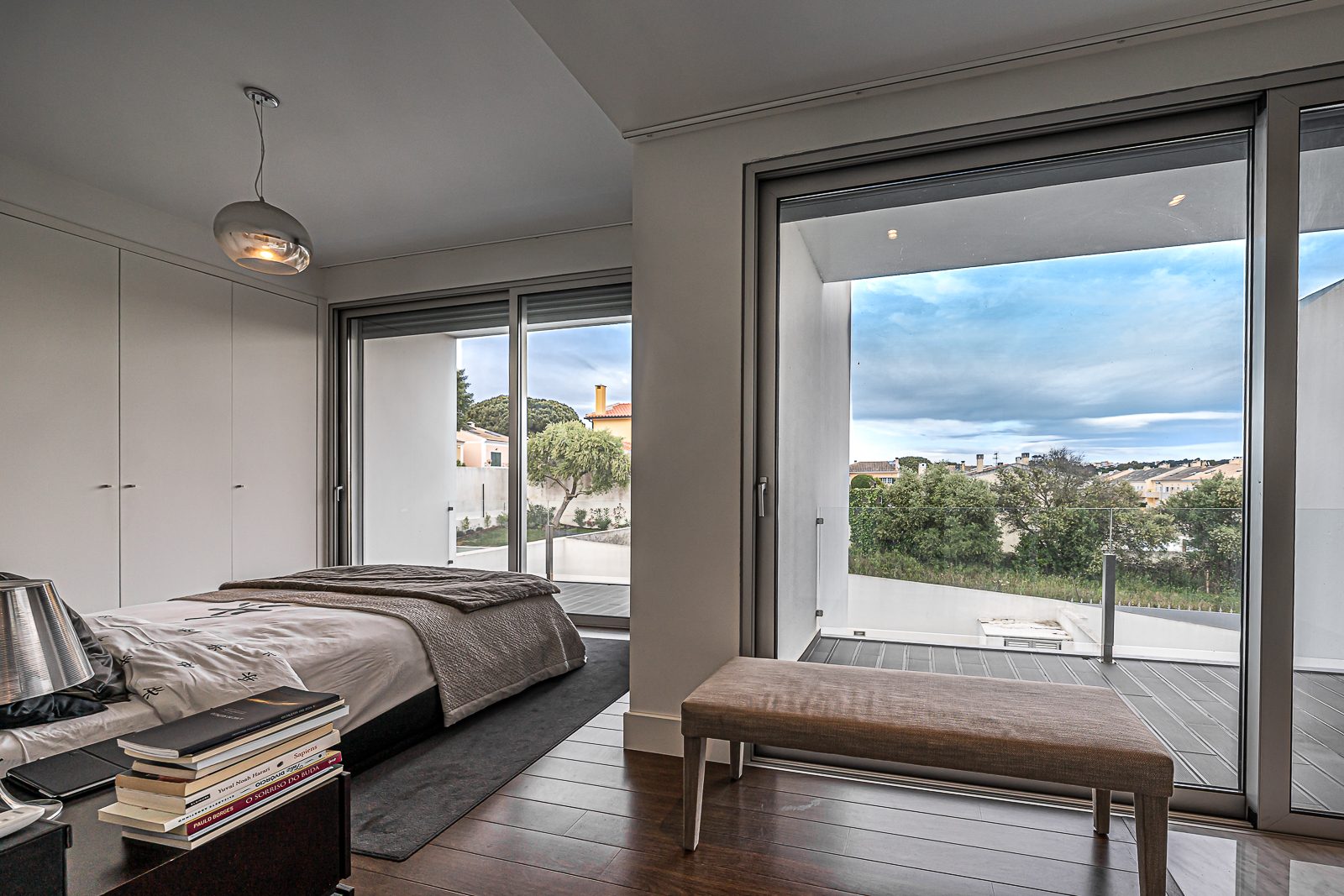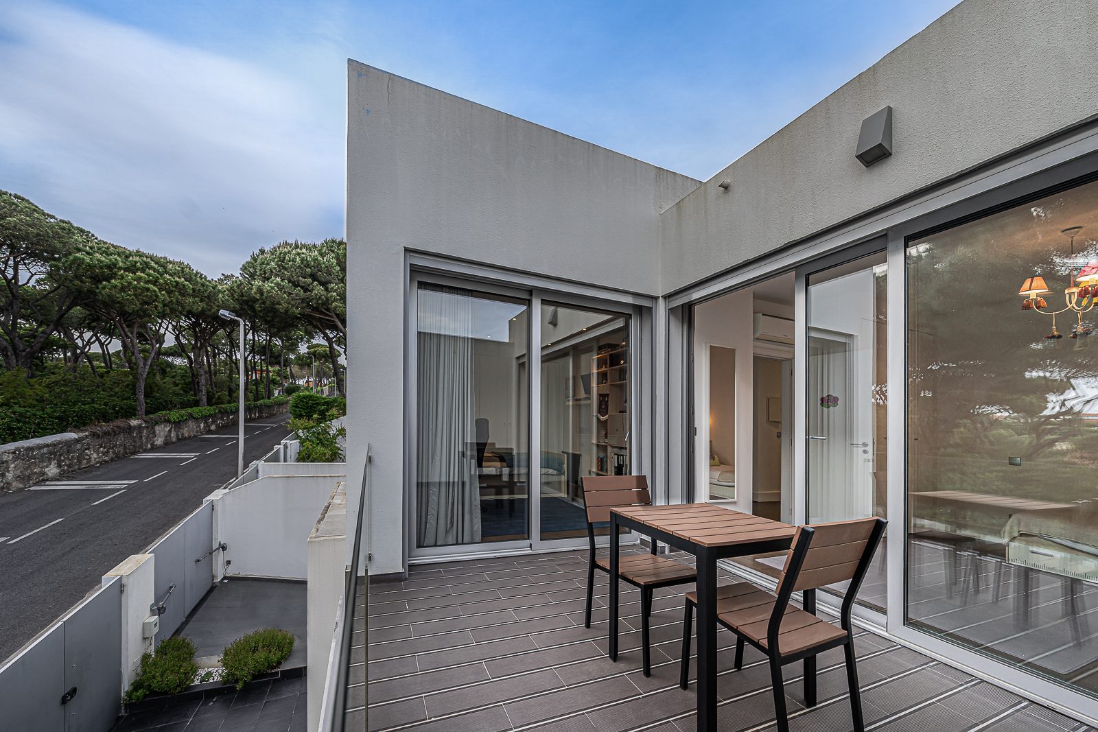 Estores elétricos com corte térmico; Aspiração Central; Ar Condicionado; janelas de vidros duplos; Terraço; duas varandas e Portões Automáticos.