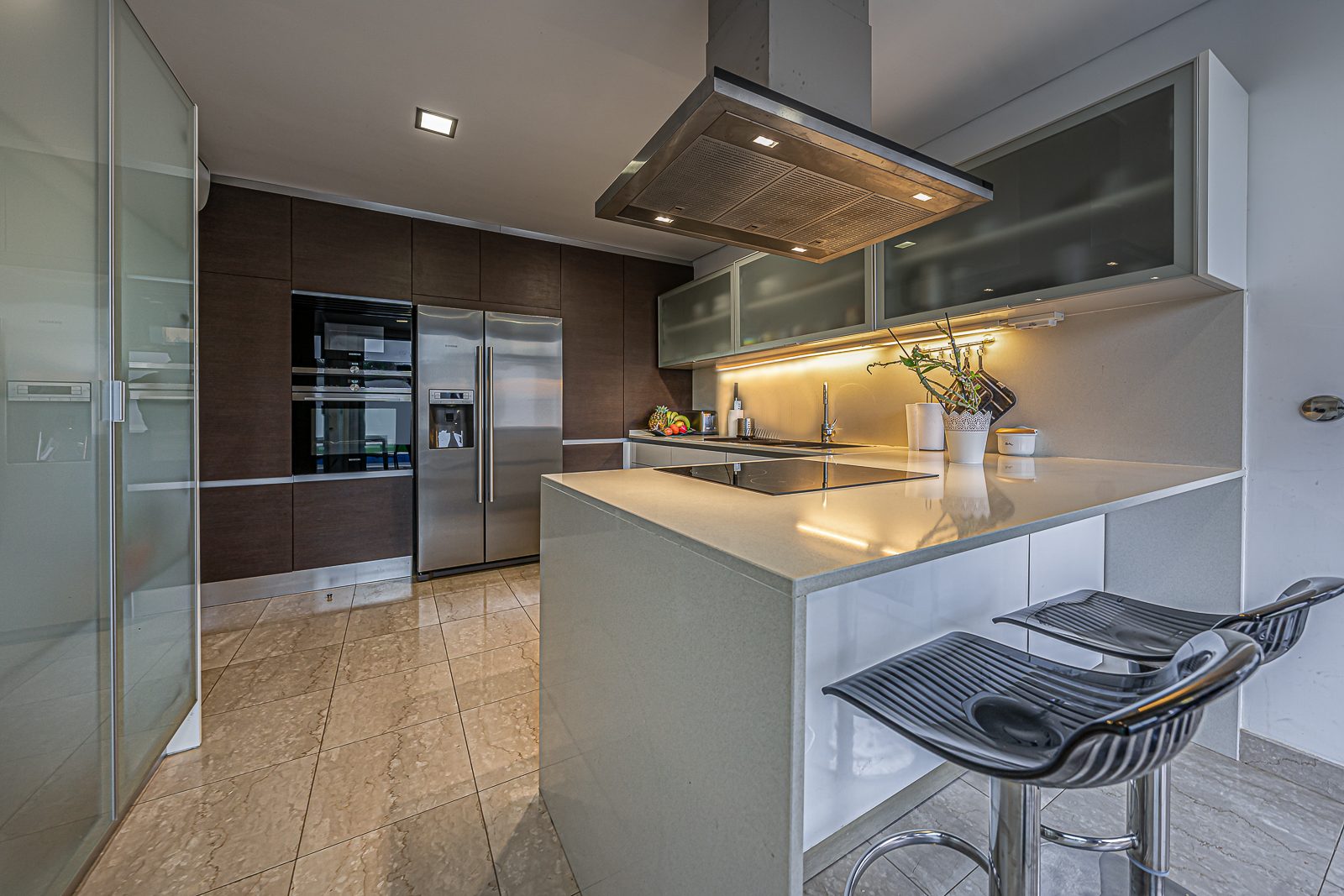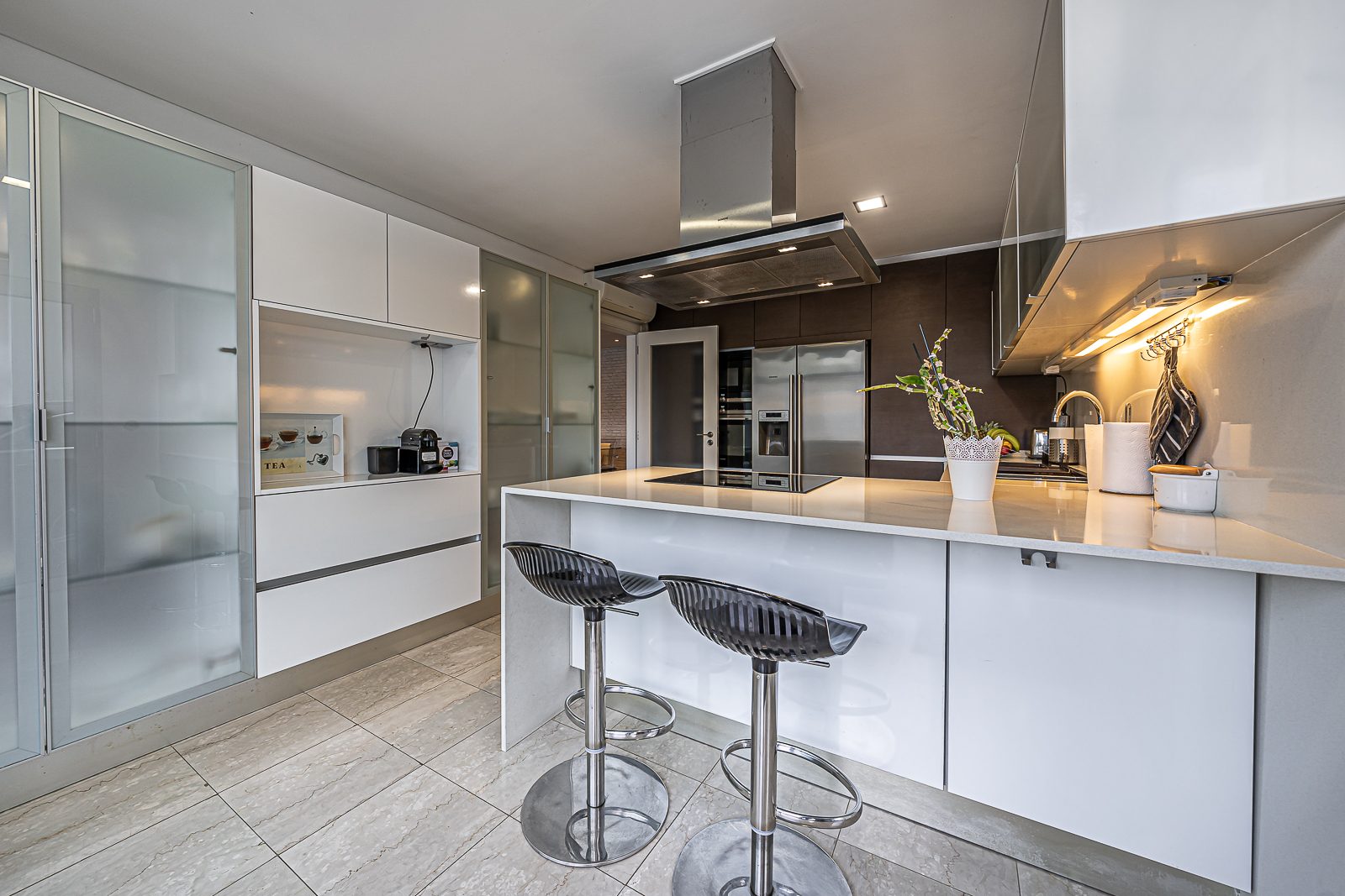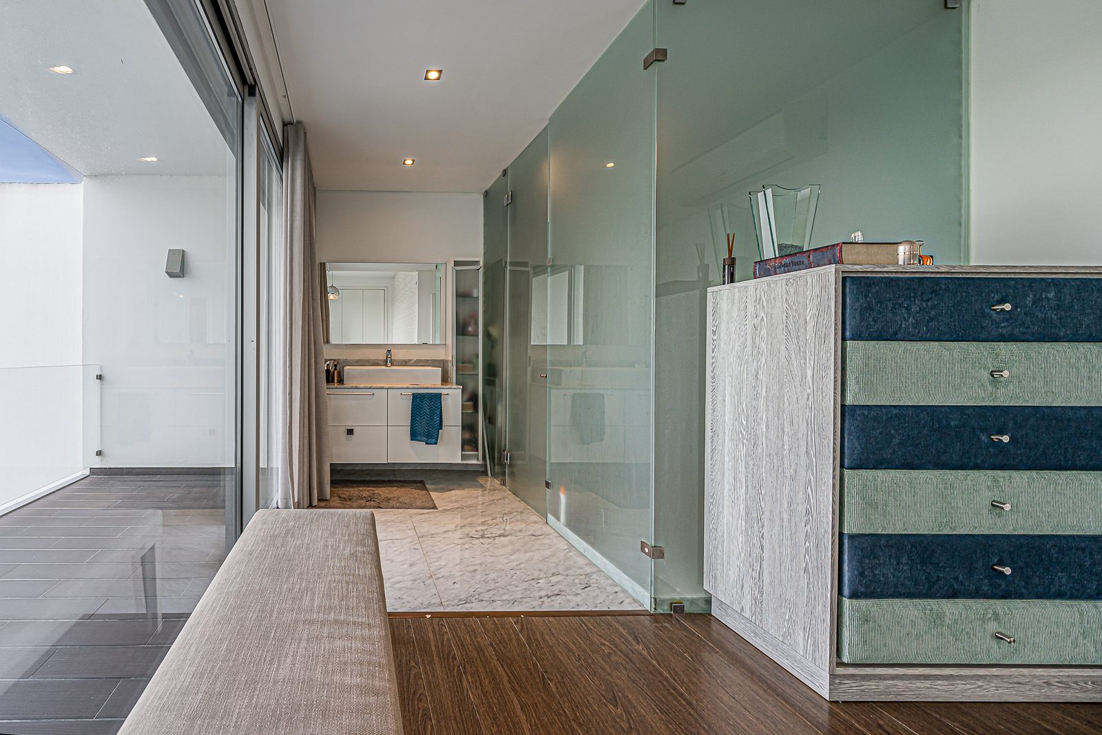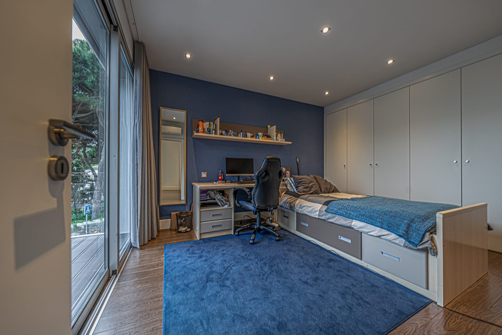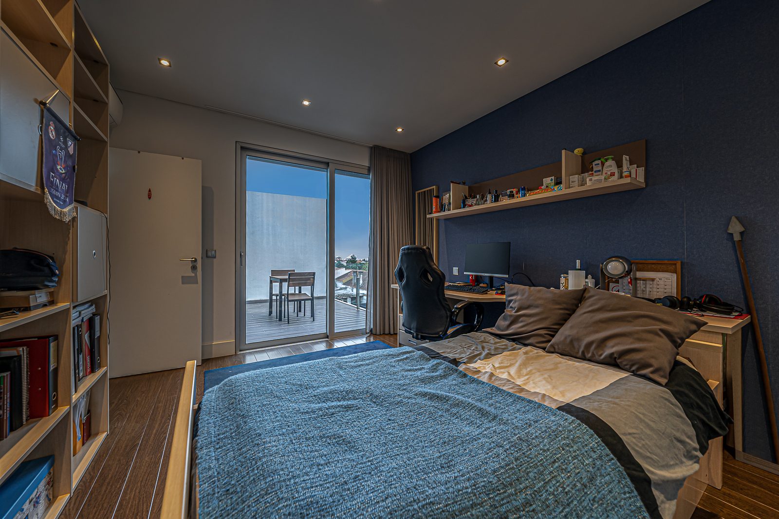 Estores elétricos com corte térmico; Aspiração Central; Ar Condicionado; janelas de vidros duplos; Terraço; duas varandas e Portões Automáticos.