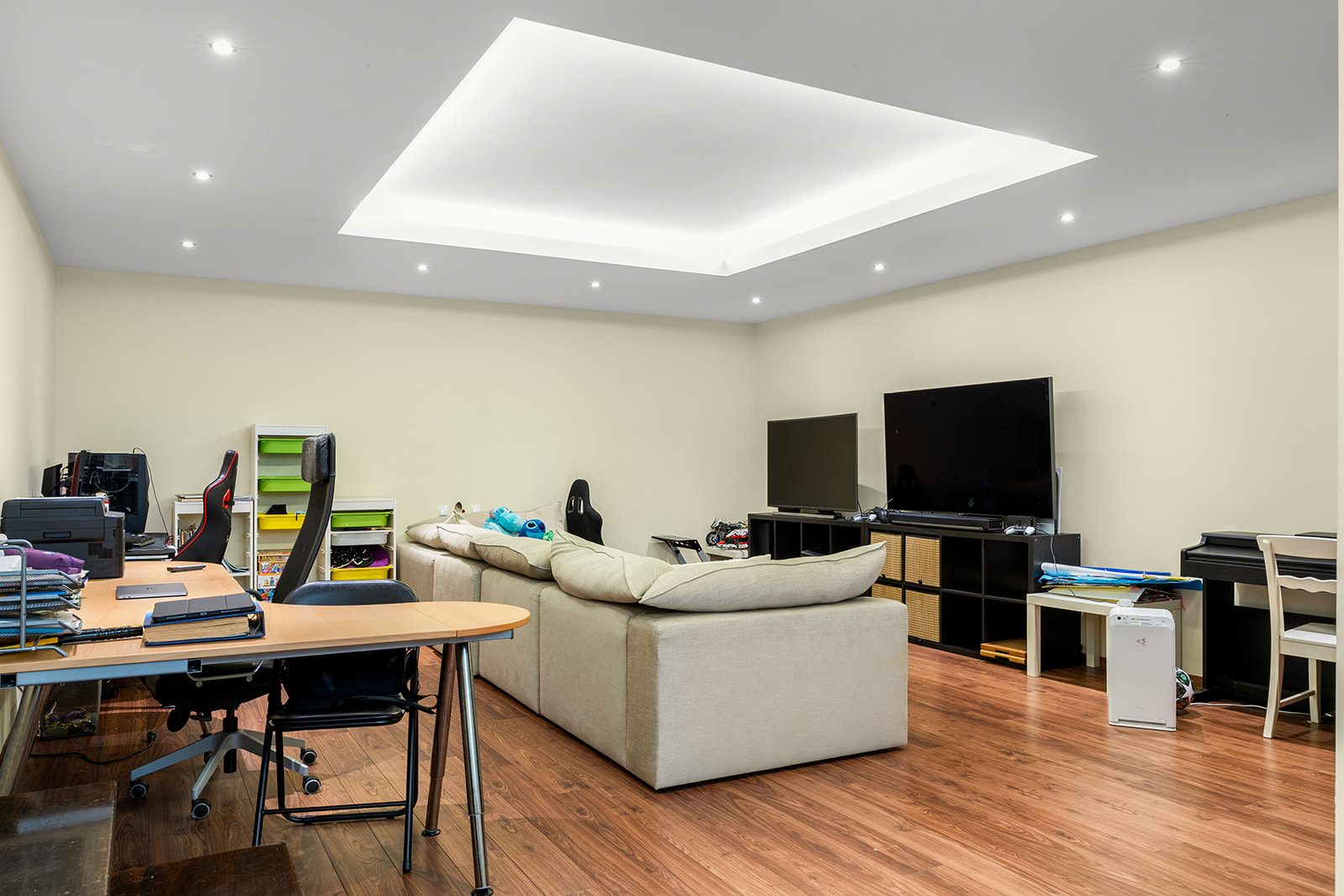 Um dos grandes diferenciais é a sua versátil cave de 60m² (não contabilizada na área total), perfeita para personalizar como escritório, ginásio, home cinema, ou uma área de lazer à medida das suas necessidades. A propriedade inclui ainda uma garagem box privativa, equipada com carregador elétrico, pensando na sua conveniência e sustentabilidade. No exterior, desfrute de uma área ampla com mais de 150m², ideal para convívio ao ar livre e momentos de relaxamento.