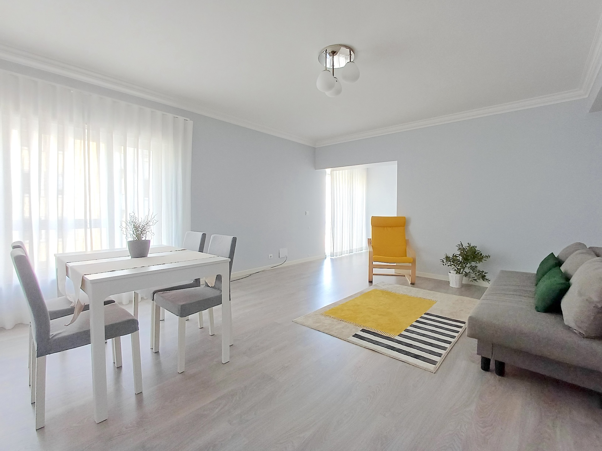 Apartamento remodelado, com muita luz natural, 2 varandas viradas a sul, 3 quartos, um deles en Suite, 2 casas de banho completas.